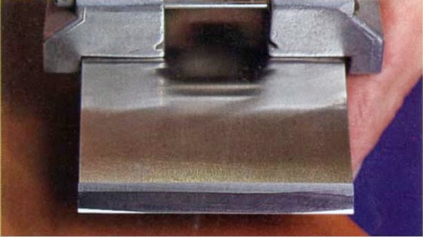 덧날의 모양을 잡을 때는 덧날 윗부분에 나무를 받쳐놓으면 정확하고 일정한 각도로 연마를 할 수 있습니다. 제대로 모양이 잡혔는지 확인하려면, 덧날과 대팻날을 겹쳐놓고 빛을 비추어 보아 날 앞부분이 정확하게 밀착되는지 보면 됩니다.