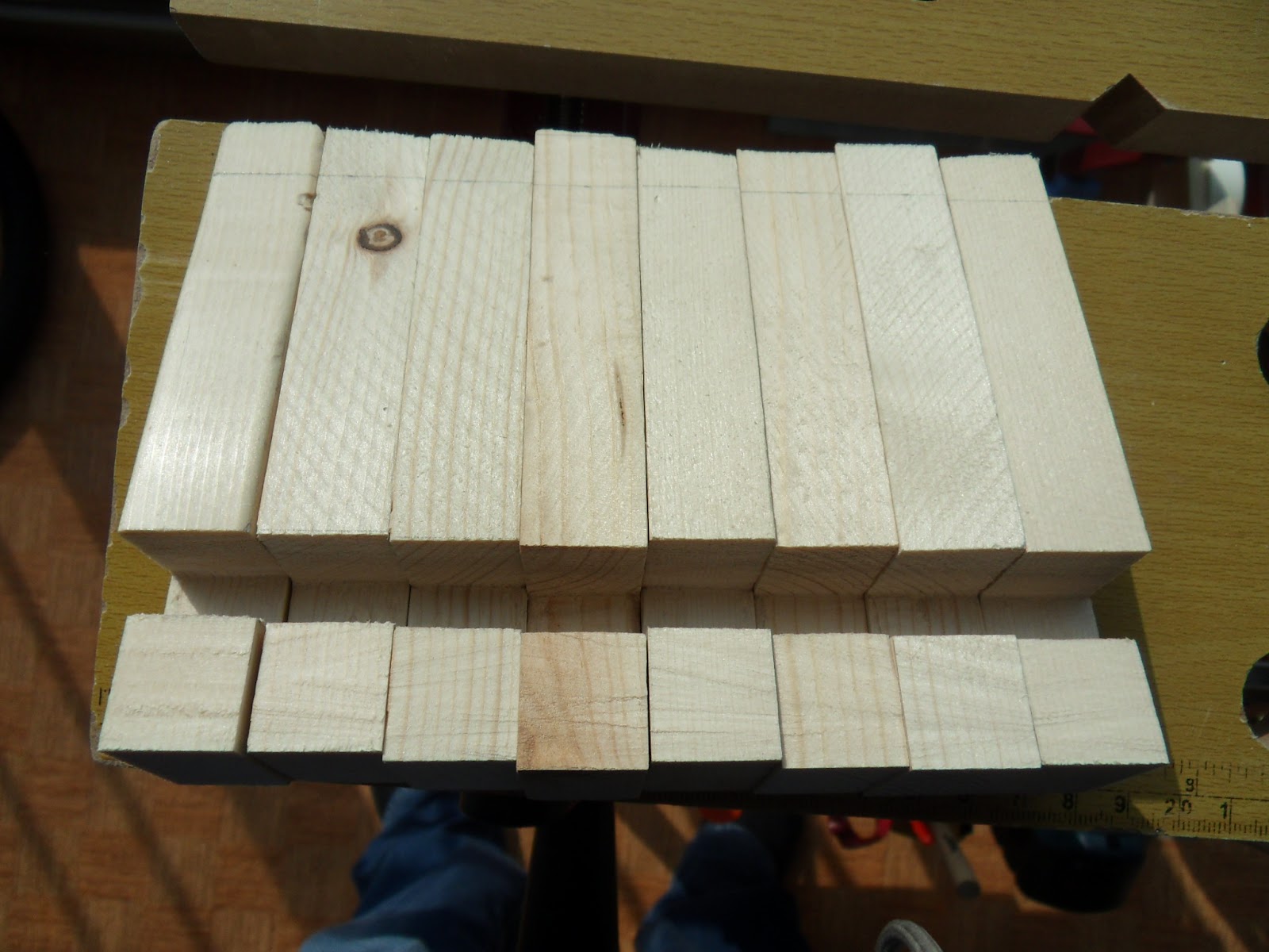 이 팔각형에 세워서 날개를 연결해야 합니다. 이를 위해서 팔각형을 둘러 턱가공을 합니다. 그리고 날개를 이 턱에 맞추어 가공하면 끼워맞춤까지는 아니더라고 접착면이 넓어져 본딩시 유리합니다. 아래 사진과 같이 아랫부분의 턱 가공을 위해 두께의 절반 정도만 톱질을 합니다.