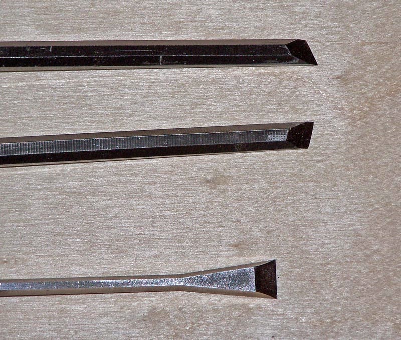 저는 저렴한 6mm 평끌을 개조하여 스큐끌로 만듭니다. 평끌을 각도를 튼 상태에서 그라인더로 갈면 쉽게 스큐끌로 만들 수 있습니다. 제가 쓴 IRWIN 끌은 개당 $10도 하지 않습니다. 스큐끌은 자주 쓰이지 않기 때문에 굳이 많은 돈을 들일 필요는 없습니다.