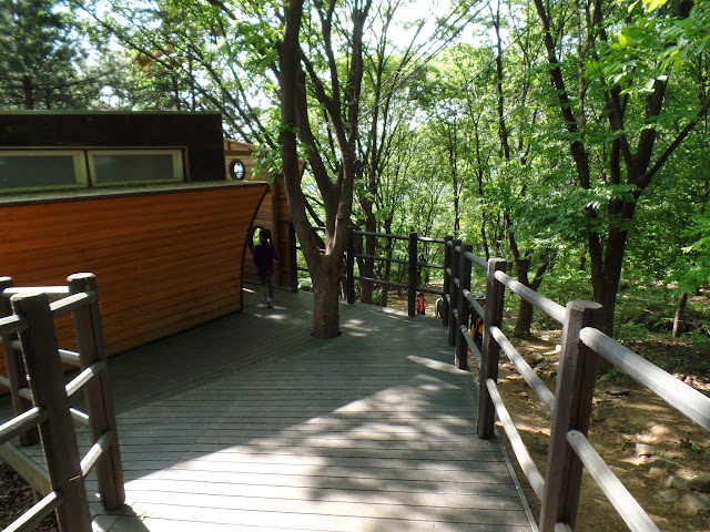 <안산 자락길>은 이렇게 대부분이 데크로 되어 있습니다. 걷기에 매우 편하지요. 하지만 어떤 곳은 제법 높이 데크가 놓여져 있어, 난간으로 떨어지면 매우 위험합니다. 아이들이 절대 장난치지 않도록 주의 주어야 합니다.
